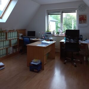 Újpesti telep helyünkön klimatizált, teakonyhákkal felszerelt irodáink kiadók. Kertvárosi környezet, a környékben ingyenes parkolás. Hétköznapi 10 órás irodaházi nyitva tartásunk ideje alatt központi recepciós szolgáltatással támogatjuk ügyfélforgalmát. Igény esetén egyéb recepciós tevékenységekkel, tárgyaló-, oktató helyiség bérléssel is állunk raktárbérlőink rendelkezésére.