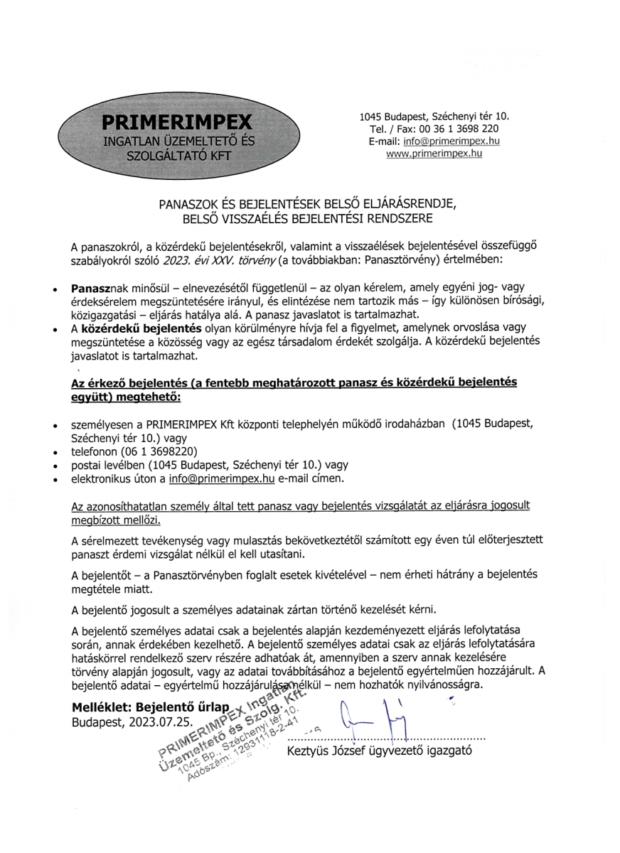 Primerimpex Ingatlan Üzemeltető és Szolgáltató Kft.
